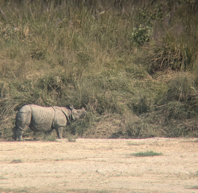Et ce qui est vraiment incroyable, c'est que les animaux sauvages, en totale liberté donc, n'hésitent pas à venir se nourrir proche des villages ! Donc il est assez courant de voir des rhinocéros ou des éléphants se balader dans les rues du village 🤩 (Je vous rassure, c'est bien plus rare pour les félins 🥹).