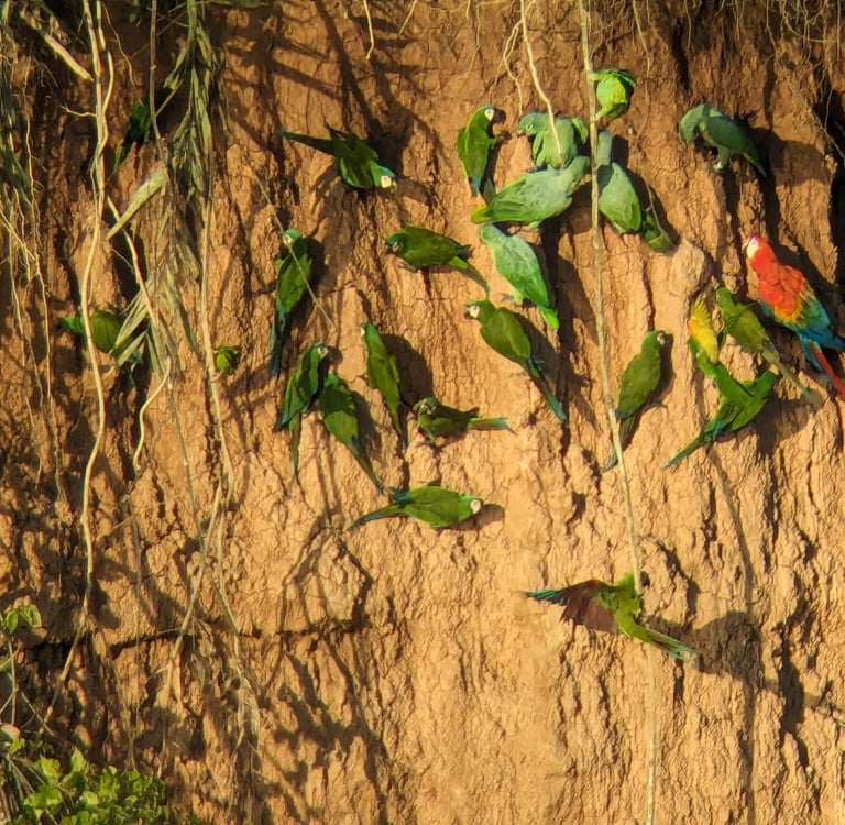 • Levée aux aurores pour assister à la rencontre matinale des milliers de perroquets qui peuplent la forêt 🦜