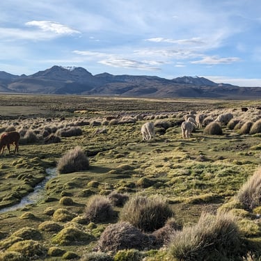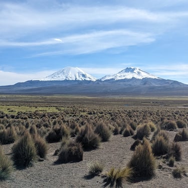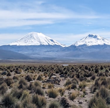 Je vous propose de découvrir l'incroyable Parc National de Sajama, dans la Cordillère des Andes : une gigantesque étendue désertique peuplée par les lamas et jonchée par des volcans culminants tous à plus de 6000m d'altitude.
