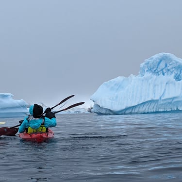 Des sorties en kayak au milieu d'immenses icebergs et des pingouins curieux qui viendront nager à côté de vous,