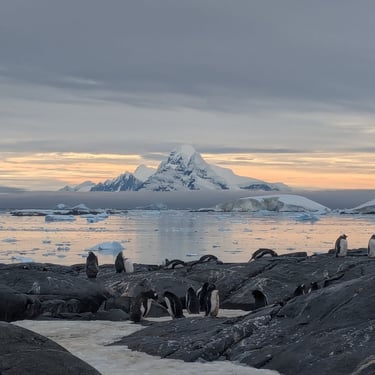 • Jour 4 : Arrivée en Antarctique et découverte des premiers paysages, et des premiers Icebergs 😱. Époustouflant ! Malgré une météo brumeuse. C'est partie pour la première sortie en zodiac, tant attendue après cette longue traversée. On navigue à travers les glaçons et on met le pied pour la première fois sur le Continent 🤗