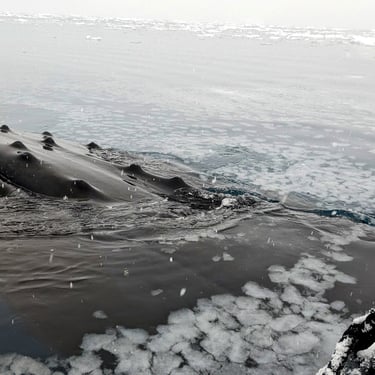 Après avoir embarqué à bord d'un zodiaque, on part à leur recherche tout en évitant les icebergs. J'ai eu la chance de tomber sur un couple de baleines à bosse extrêmement curieux ! Pendant 45mn, elles nageaient entre les zodiaques, passaient en dessous de nous, s'arrêtaient, faisant des vrilles sous l'eau pour nous permettre de les contempler en long, en large et en travers 😱