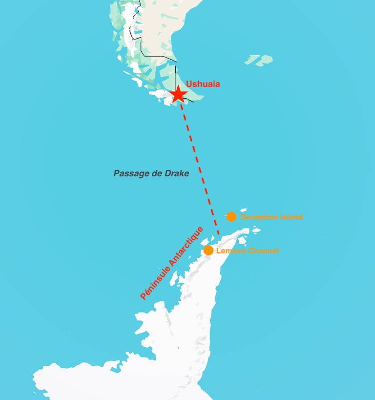 La croisière en Antarctique dure 13 jours : 4 jours A/R de traversée entre la pointe Sud de l'Amérique Latine et la Péninsule Antarctique - le célèbre du Passage de Drake - et 9 jours de navigation et d'activités en Antarctique.