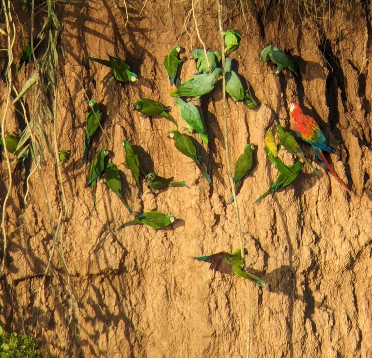 • Levée aux aurores pour assister à la rencontre matinale des milliers de perroquets qui peuplent la forêt 🦜