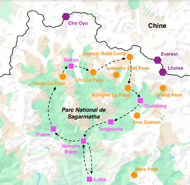 Cet itinéraire est valable pour l'ascension de l'Island Peak. Si vous décidez de gravir un autre sommet, il sera quelque peu modifié 😉