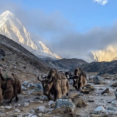 ➡️ Des ponts suspendus, des troupeaux de Yaks, des enfants trop mignons, des Népalais souriants, des glaciers, des frayeurs, le manque d'oxygène, de l'escalade sur glace, des doigts et des orteils gelés, le Mont Everest, de belles rencontres, des Dal Bhat à volonté, de convois d'ânes, des porteurs, de la neige... Et j'en passe ! 😱
