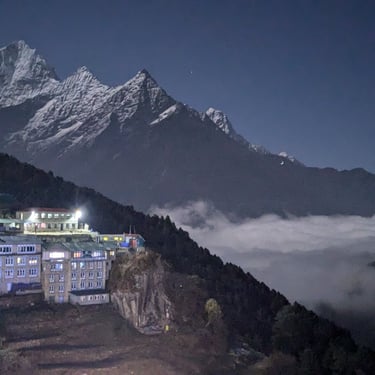 Tous les soirs, nous dormions dans des lodges tenus par des Sherpas. Et autant vous dire que l'isolation des habitations n'est pas le point fort du Népal 🥶 même en intérieur, il faisait -10 degrés !