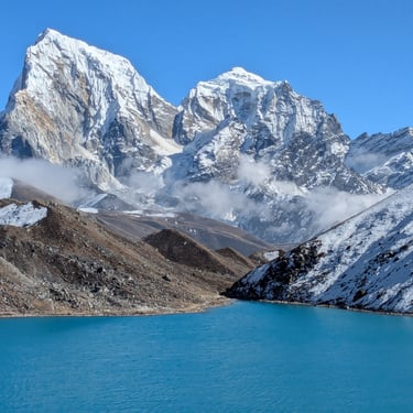 Il est temps de franchir pour la première fois la barre des 5000m d'altitude ! Vous franchirez le col de Renjo La Pass (5360m) et vous serez récompensé par l'une des plus belles vues sur le Mont Everest, avec en premier plan le magnifique Lac bleu étincelant de Gokyo. Pour les plus déterminés, il est possible d'aller admirer le coucher de soleil au sommet de Gokyo Ri (3h/4km/600D+) en fin de journée.
