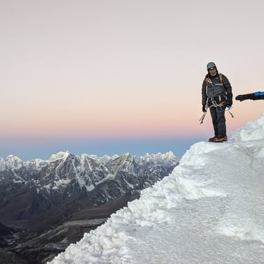Après un réveil vers 1h du matin, vous mangerez un petit-déjeuner consistant et vous entamerez votre ascension de l'Island Peak. Arrivée au sommet prévu pour le lever du soleil.