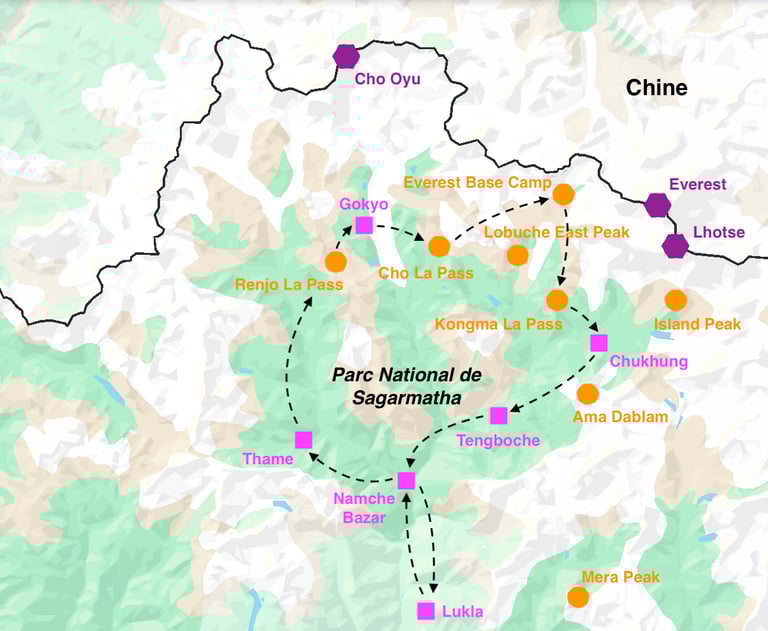 Je vous propose de partir à la conquête du Parc National de Sagarmatha, le nom népalais du légendaire Mont Everest, pour une aventure d'environ 3 semaines au cœur des plus hautes montagnes du monde.
